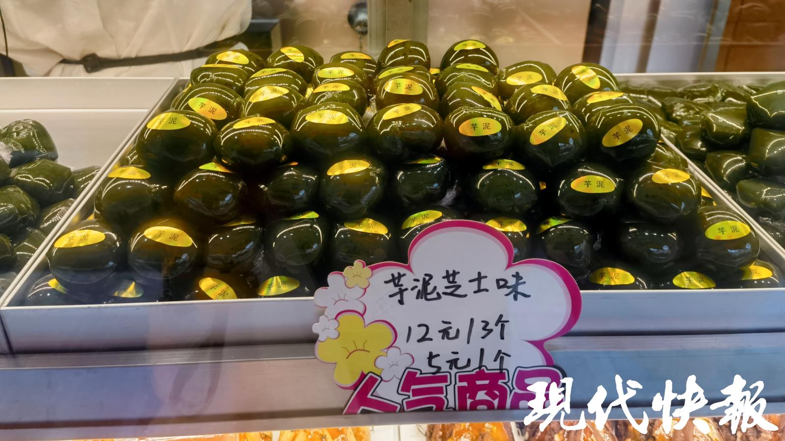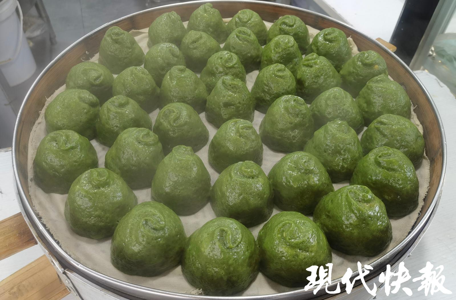 现代快报讯(记者 杜雪迎 文/摄) 在江南地区,清明节吃青团是一种食俗。咬上一口糯叽叽的可爱团子,满满的春天味道就来了。4月2日,现代快报记者探访南京的糕团、点心店发现,不少小店都推出了“春日限定”青团。青团迎来销售高峰,有的店铺一天能卖五六千个。在众多口味中,传统的豆沙、蛋黄肉松口味依旧占据“C 位”,受顾客欢迎。