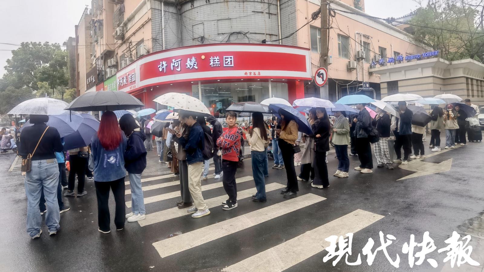 不少人冒雨排队