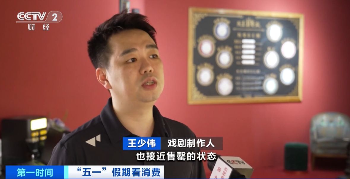 戏剧制作人王少伟:目前整个(“五一”期间)30场演出接近售罄的状态,(观众)年龄层大概是在18岁到45岁之间,比较多的会是上班族,观众复购率会提升,最多的一个观众他反复来了有40多次。