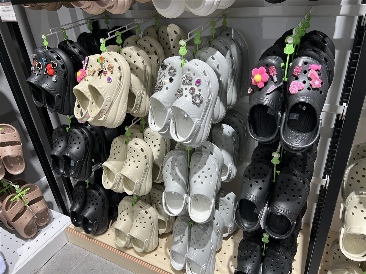 在武昌一家商场内的品牌卡骆驰(Crocs)门店,三面货架上挂满了各式各样色彩、款式的洞洞鞋,几位顾客正在店内试穿。“这个月很多女生来买云朵、泡芙两款,都是跟高4—5厘米的厚底鞋,穿上显腿长。”该店店员介绍,一款外形类似运动鞋的波波洞洞鞋,则是男鞋中最热销的款式之一。