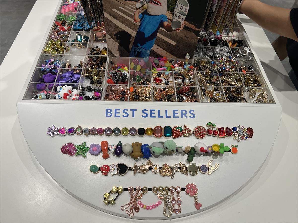 电商平台上,也有不少买鞋花、鞋扣的商家,单价多在两三元一个,月销量最好的能达上万单。“卖得最好的是草莓熊、Loopy、库洛米等当下比较火的IP,一般都是同一系列买一套,一只鞋子上装饰4、5个已经足够了。”一家饰品淘宝店客服说。