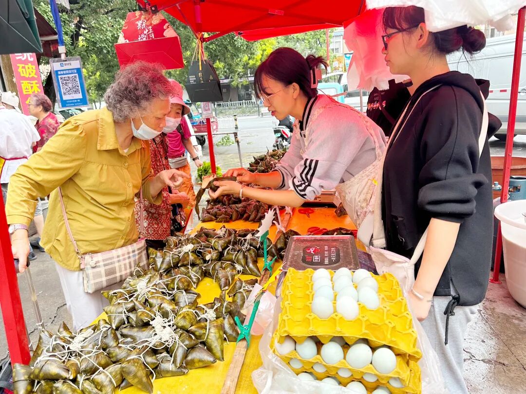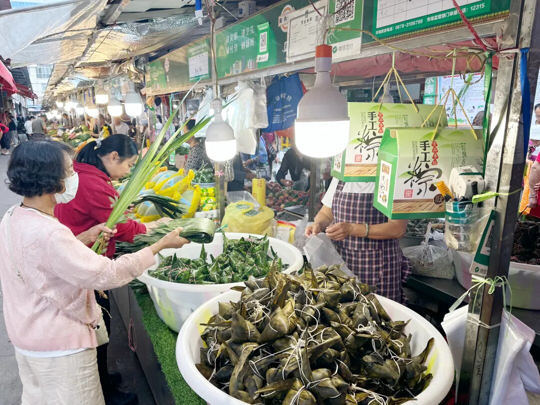 粽叶飘香艾草芳,端午小长假期间,记者走访楚雄城区发现,丰富多彩的端午传统习俗与消费热点结合,让“端午经济”烟火气满满。粽子作为端午节必不可少的传统美食,深受消费者喜爱。楚雄市各大商超、农贸市场里的粽子可谓“花样百出”,除了传统的蜜枣粽、叉烧粽,还有杂粮粽、榴莲粽等各种创新口味的粽子琳琅满目,充分满足消费者的多元需求。记者还发现,随着大众绿色消费理念的持续增强,今年粽子的包装以简单大方为主,相较之前商家在包装上下功夫,现在的粽子市场逐渐回归口味竞争,价位亲民,消费者消费热情高涨。除购买成品粽子之外,许多市民选择自己动手包粽子,粽叶、糯米、鸭蛋等原材料销售也十分火爆。“我觉得端午节自己包粽子更有意义,每年我们家都会包很多粽子,然后冻起来留着慢慢吃。粽子不仅是节日必备的食物,也是传统美食,我们家人都很喜欢吃。全家人聚在一起包粽子、聊天,十分开心。”市民张女士说。在购买端午美食的同时,市民们还会顺手买些艾草、菖蒲带回家。“每年端午节,我们家都会在家门口挂艾草、菖蒲,算是过节的一种仪式感。”刚刚买了两把艾草、菖蒲的市民李先生说,“艾草和菖蒲除了有驱邪避凶的寓意,还能用来洗澡,可以起到防蚊驱虫的作用。”作为中华传统文化重要载体,端午节具备丰富的文化内涵和浓厚仪式感,承载了迎福纳祥的朴素愿望,积淀着家国情怀的精神力量,广大市民在感受传统文化魅力的同时,享受着当下的幸福生活。(记者 王 洪 摄影报道)