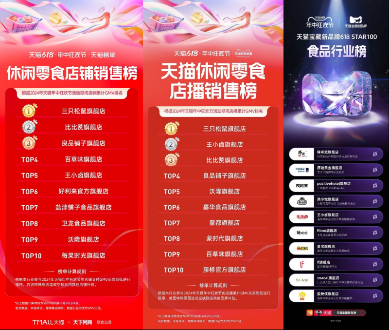 2024年,新消费品牌代表王小卤虎皮凤爪又一次经受住了“618”大战考验,连续两年位列天猫“618”肉类零食第一,连续五年位列天猫鸡肉零食第一。