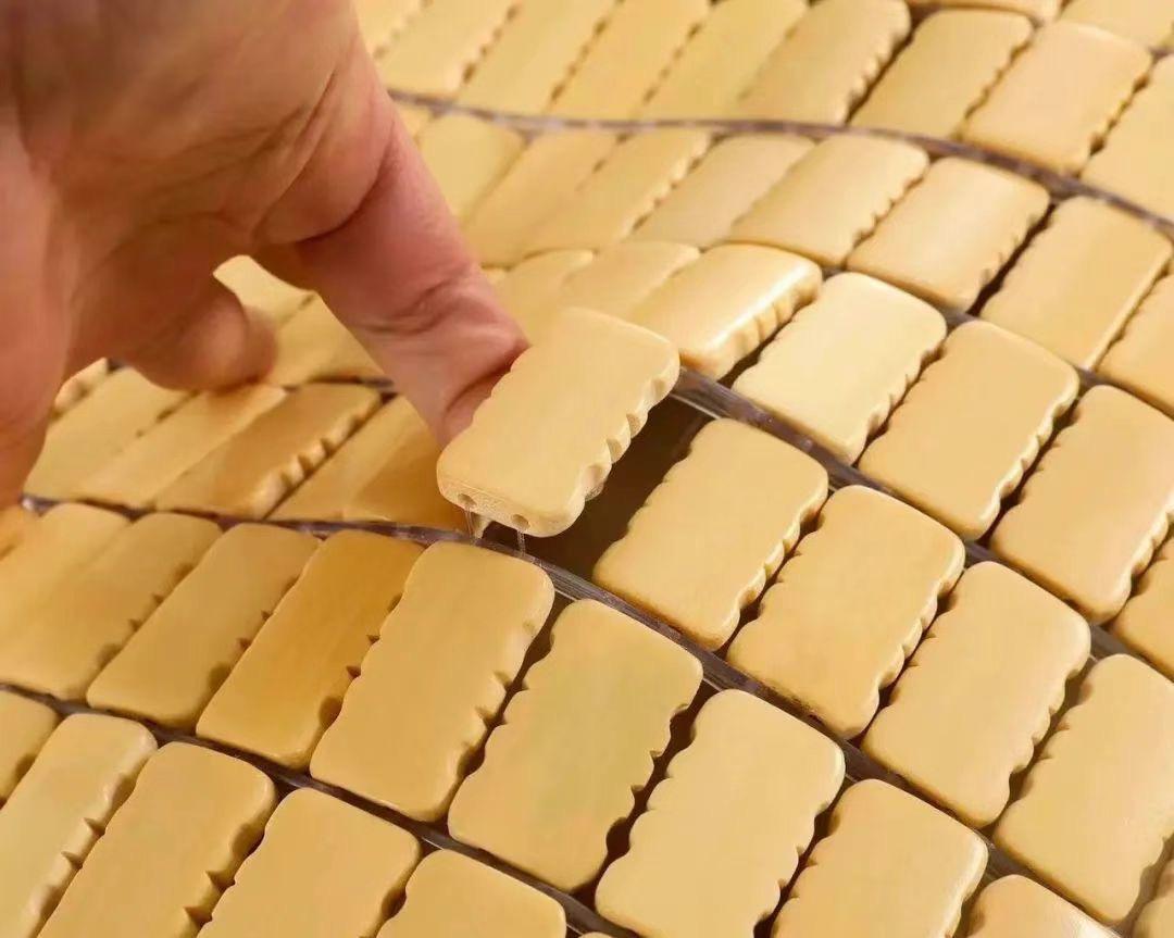 麻将凉席表面光滑,与人体皮肤接触的面积大,传导热量更快,接触时感觉更凉快。此外,麻将块之间的缝隙,也能提升凉席整体的透气性,帮助人体散热。这么一看,被消费者吐槽的夹肉缝隙,竟然是有科学原理的。