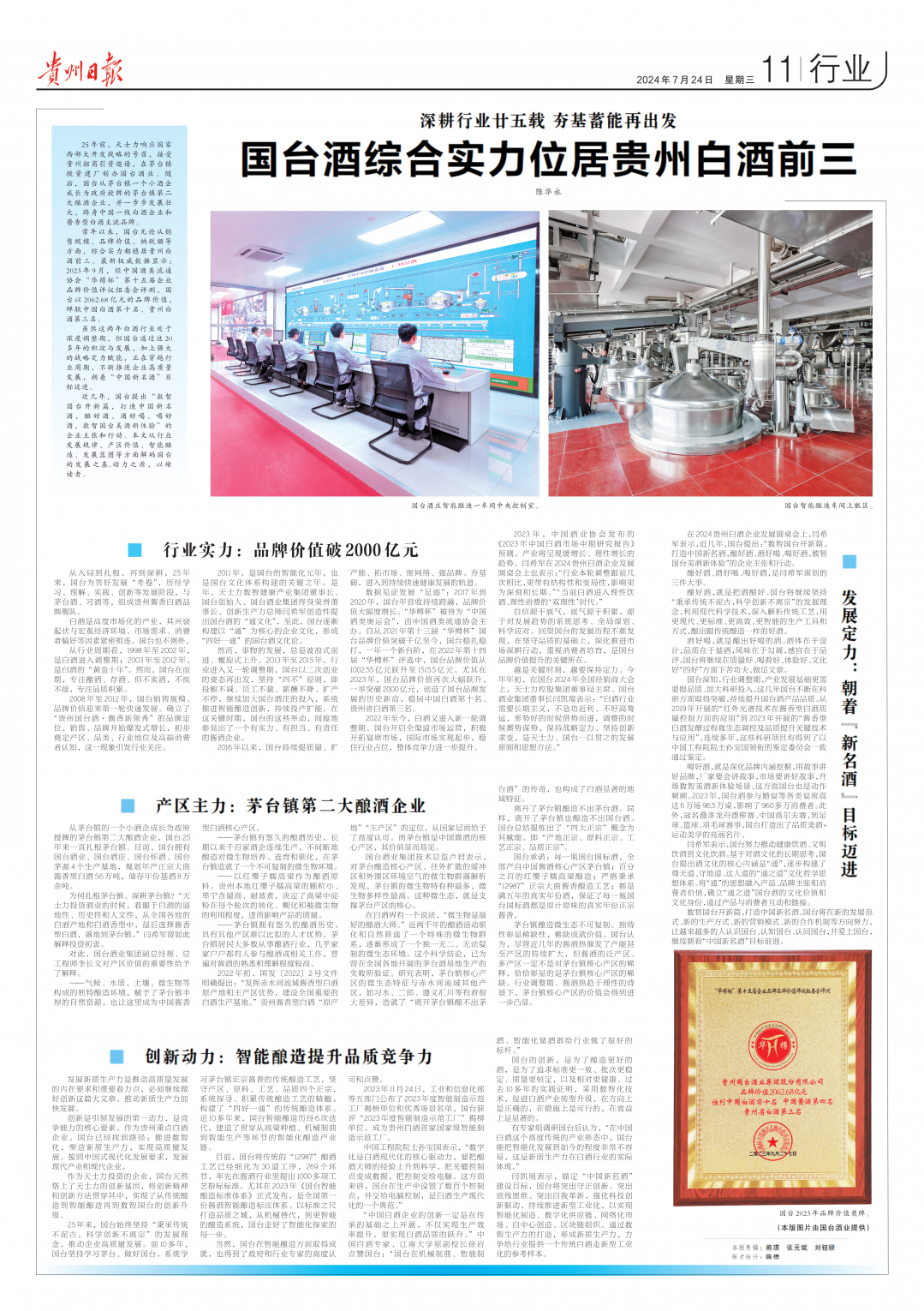 有专家组调研国台后认为,“在中国白酒这个高度传统的产业形态中,国台能把智能化发展到如今的程度非常不容易,这是新质生产力在白酒行业的实际体现。”