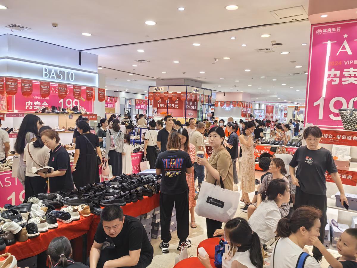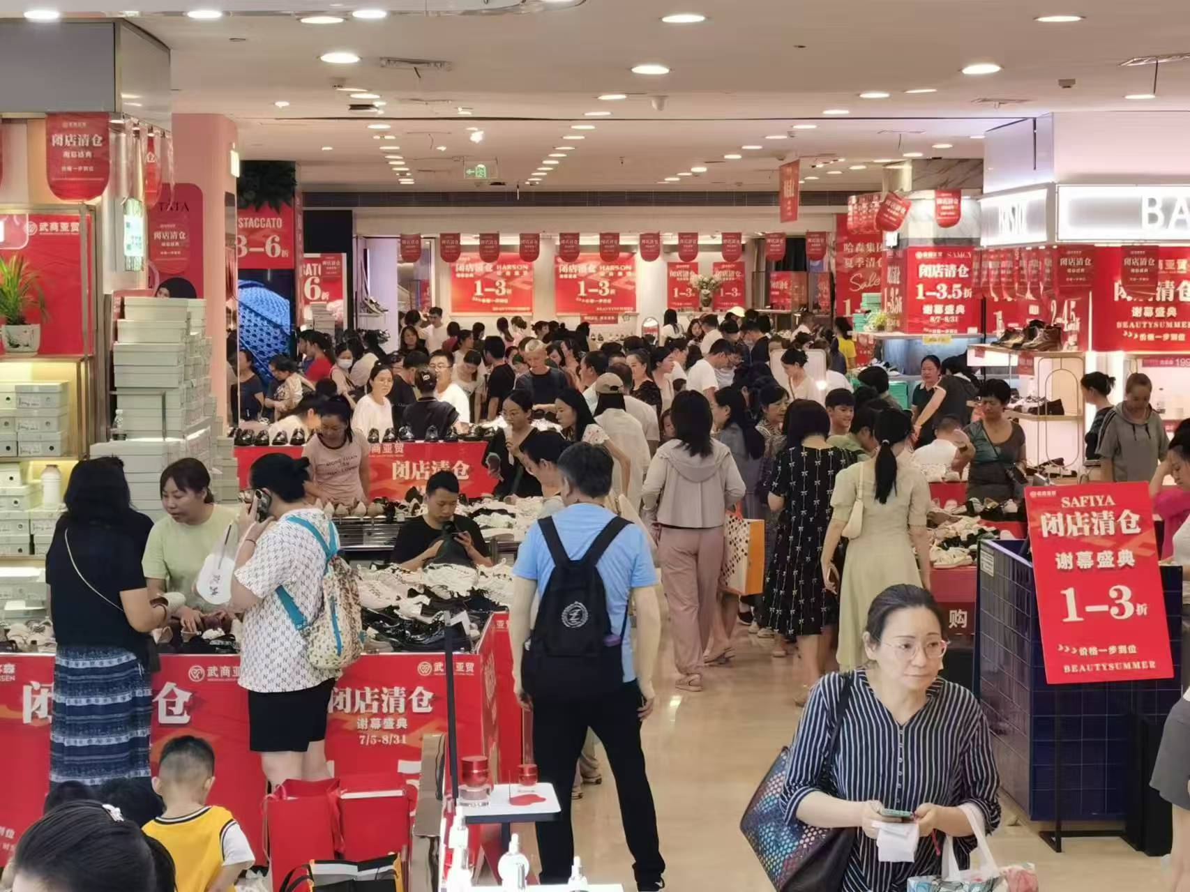 每一层都挤满消费者,各品牌专柜排起长队,店员多次往返仓库补货……近日,武商亚贸广场消费热度攀高,全场低至一折的清仓促销活动备受消费者热捧。除了武汉本地市民,更有不少来自咸宁、孝感等多地的顾客慕名而来“薅羊毛”。