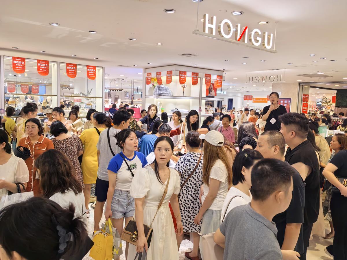 据武商亚贸广场介绍,一折起清仓促销的活动引爆了消费市场原本平淡的8月。“虽然说是清仓,但是很多货品都是当季款,全场推出1-5折优惠,就连平时不打折的款式也做了半价促销。对于我们这种几乎从来不做全场折扣的品牌而言,这个价格还是很有吸引力的,很多会员得知促销消息后,第一时间跑来买东西。”在女装品牌珂莱蒂尔专柜,销售员向记者介绍,“周末两天基本连饭都来不及吃,太多人了,从商场早上开门到晚上关门,客人一直没有断过。”