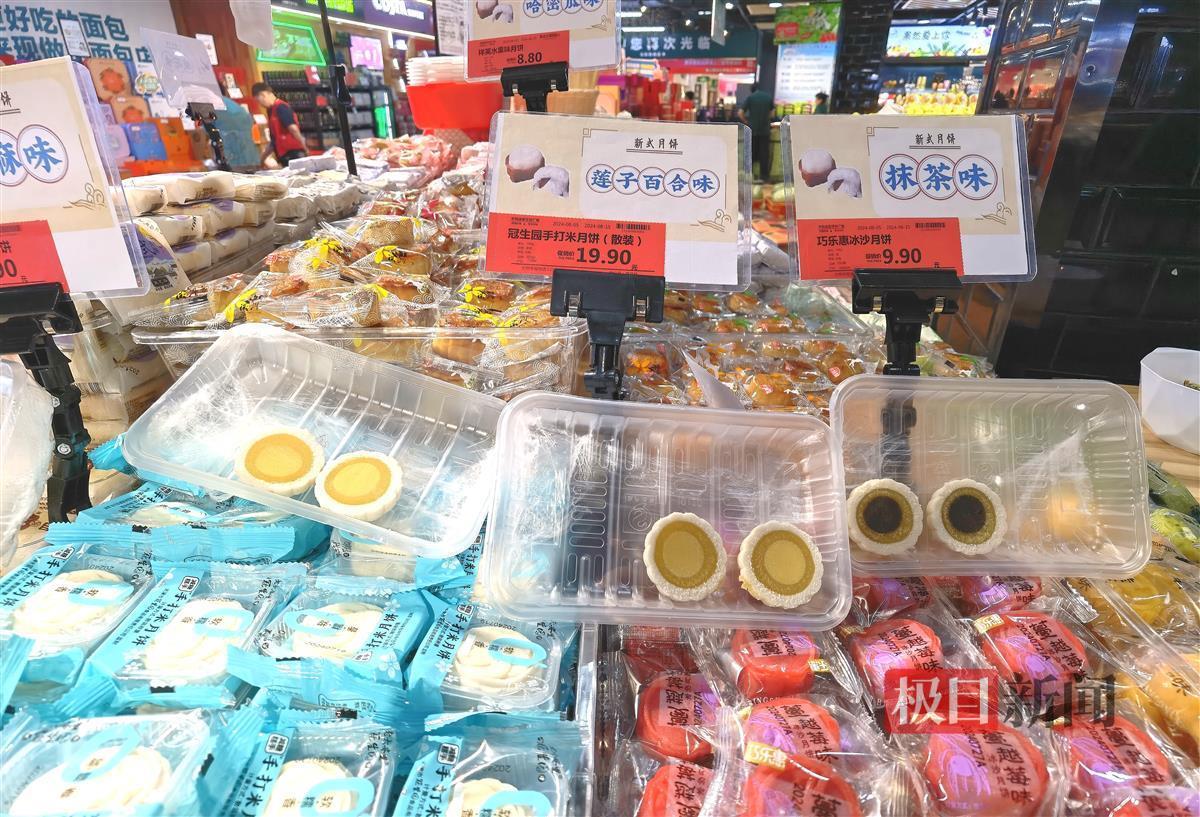 距离中秋节还有月余,但在武汉多家商超、糕点店、烘焙店里,月饼礼盒和散装月饼已经陆续上架了。8月15日,在武汉中商徐东平价广场,苏式月饼、广式月饼等多个品类的散装月饼摆放在货架上,扬子江、华美等月饼礼盒也摆放在显眼的展示台上。