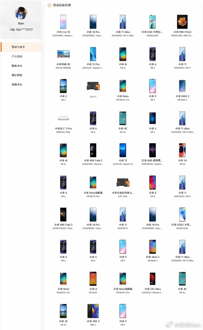 有网友列出用过的各种型号的小米手机