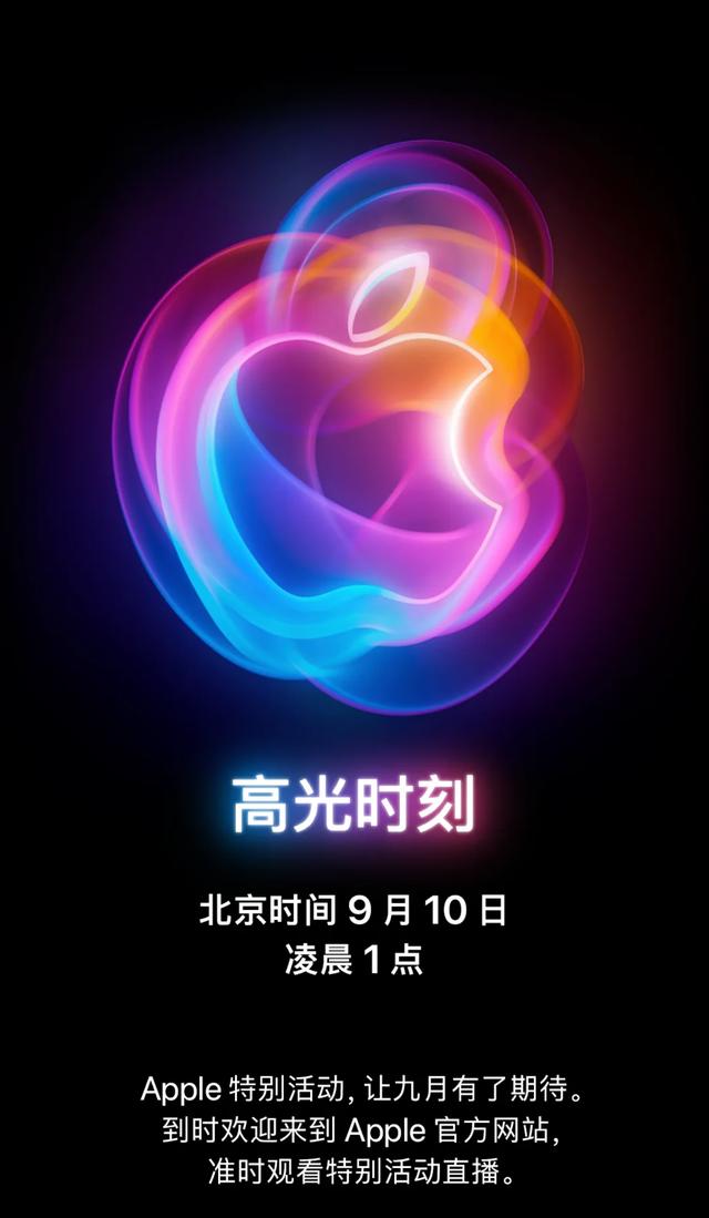 8月27日凌晨,苹果发出邀请函,宣布将在北京时间9月10日凌晨1时举行特别活动,主题为“高光时刻”。