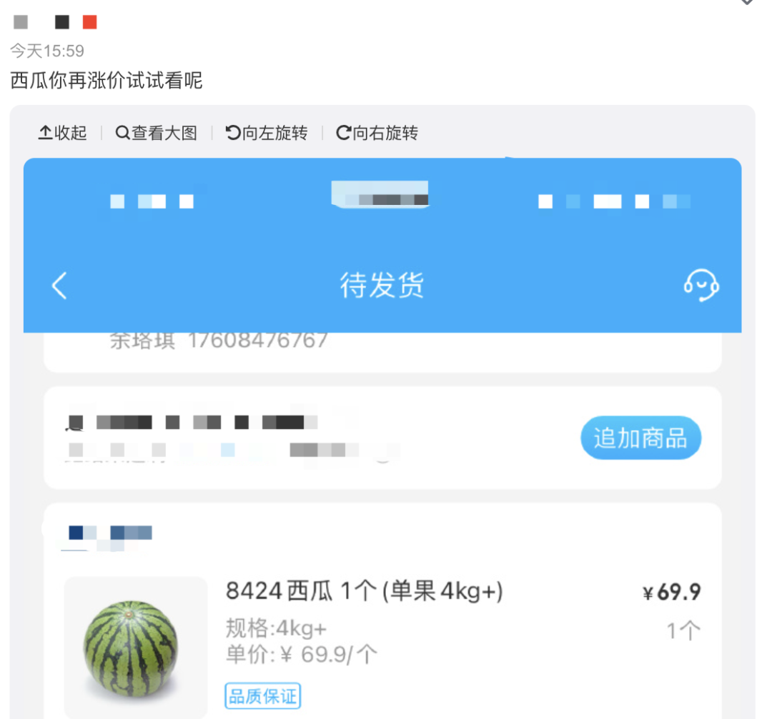 有水果店的老板说,虽然往年8月份西瓜也会涨价,但感觉今年涨得太快了,好像是这半个月突然涨价的,而且幅度也大。