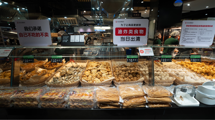 “质”为先,调结构、降价格。顾客的全新感受来源于超市对货品种类进行的优化和调整,江夏中百广场店淘汰单品10634个,下架率超80%,引进新品5660个。主导进销差价型模式,取消促销活动,平均降价幅度20%,部分类别降价近40%,以实实在在的商品定价回馈消费者。同时更注重食品安全和鲜度管理,并对原有烘焙设备进行了全方位的维护保养和更新迭代,在扩大鲜度“经营面积”的同时,保障高鲜度商品当日出清,让门店“烟火气十足”。