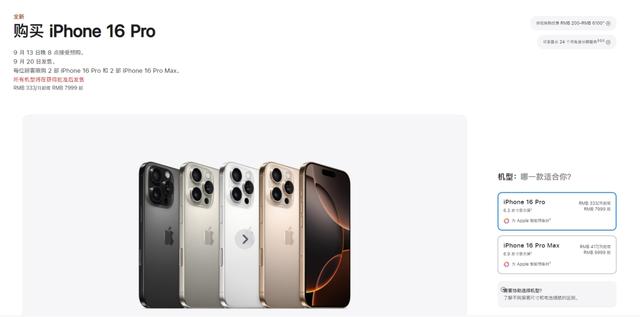 目前,在价格方面,苹果iPhone16及Pro系列与上一代 iPhone15及Pro系列的各存储版本定价相同,将于9月13日晚8点接受预购,9月20日发售。