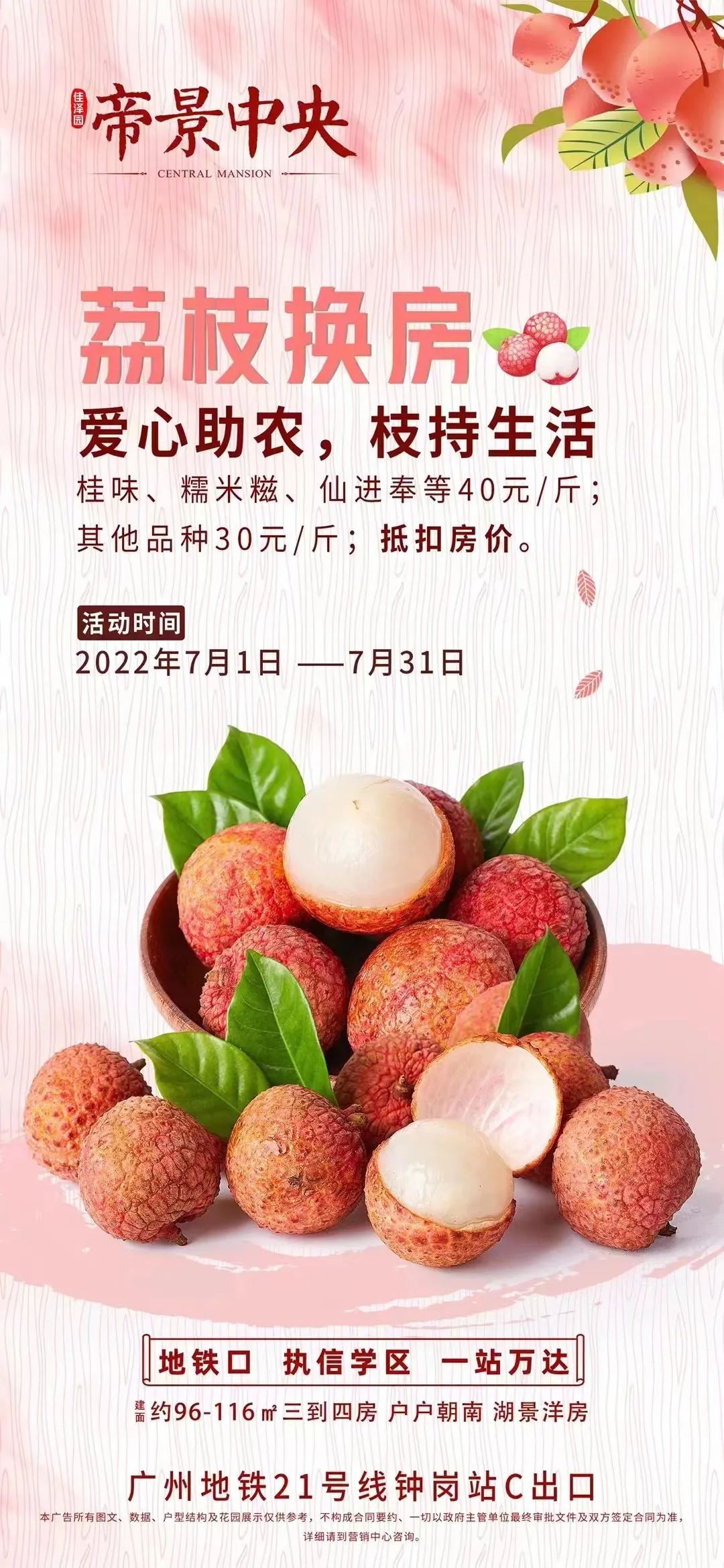 2022年7月,在广东省广州市增城区的佳泽园帝景中央楼盘推出“荔枝换房”的活动。