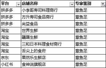 在本次35个样本中,经专家鉴定,有9个样本确认为章鱼足,主要集中在淘宝平台和拼多多平台,相关店铺网页上均未发现产品虚标和虚假宣传等情况。