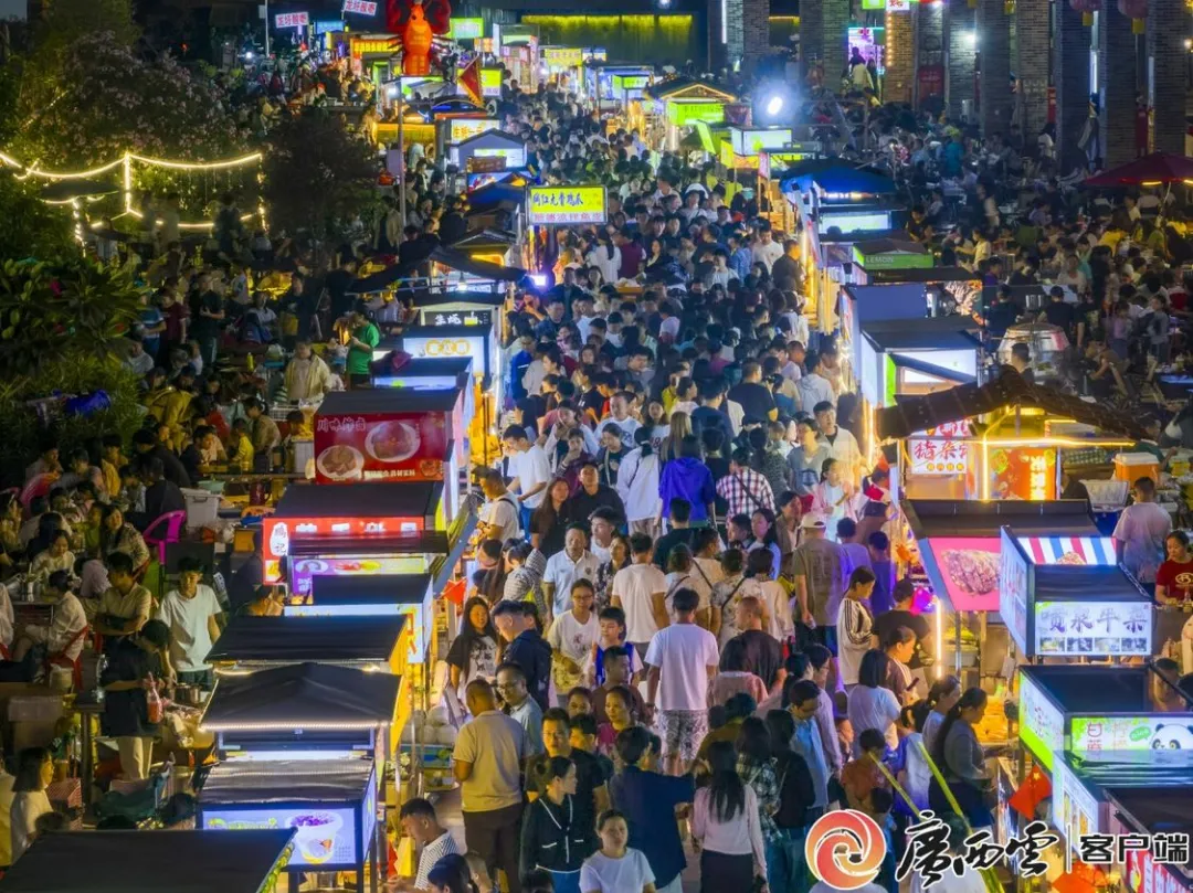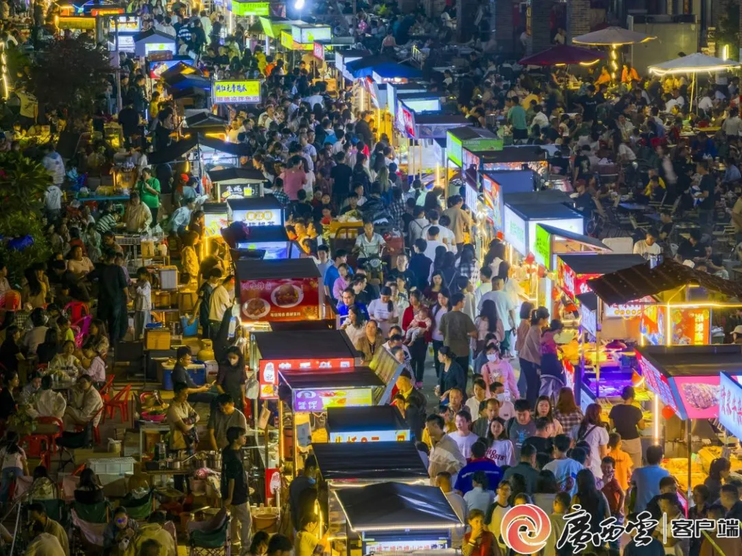 图为梧州水云天夜市熙熙攘攘的人群。(资料图片)