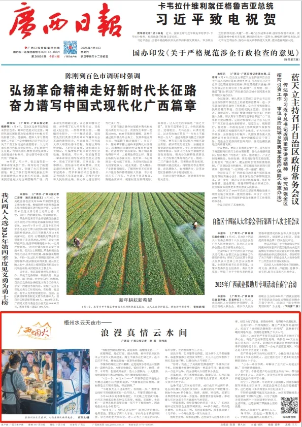 1月4日《广西日报》头版刊发文章《梧州水云天夜市——浪漫真情云水间》: