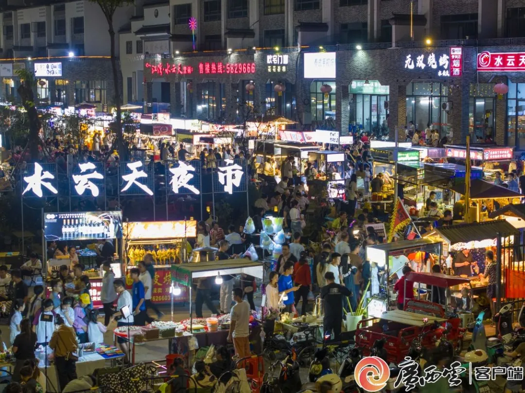 图为梧州水云间夜市熙熙攘攘的人群。(资料图片)