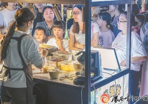 在梧州水云天夜市,人们在排队购买美食。何华文 摄