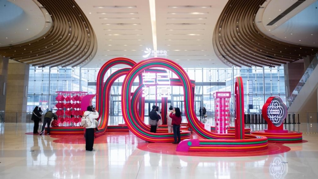 新春到来之际,苏州中心商场的迎新氛围已就位。位于一楼中庭的“吉巳如愿”新春巨型装置以生肖蛇和中国结为灵感,位于三楼凤园的新春非遗市集开市。同时伴随新店开业、限时快闪等活动,苏州中心商场的乙巳蛇年新春仪式感,将开启充满中国文化韵味的新春美好生活。