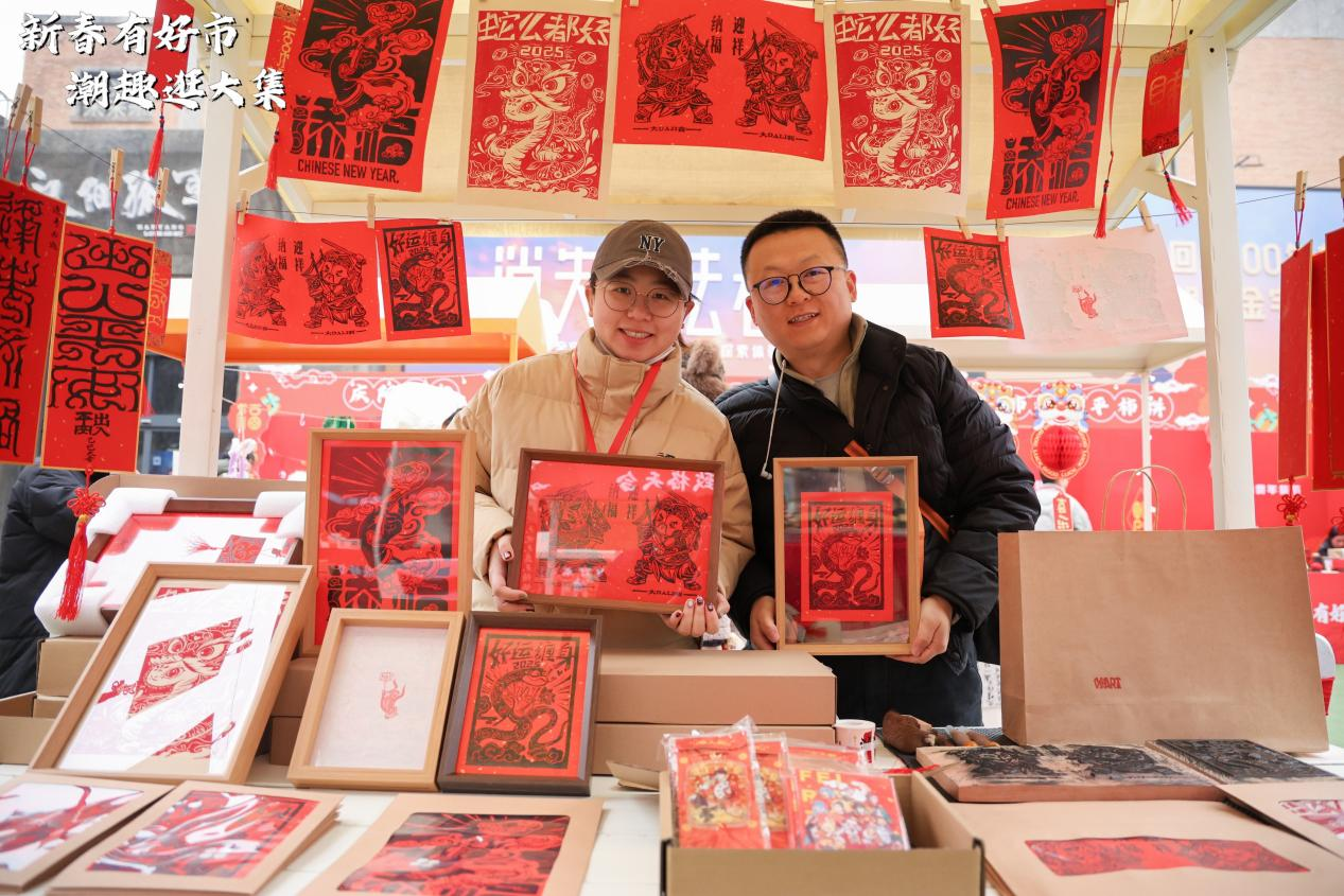 年货节现场设置了“非遗有好物”“舌尖长安味”“潮趣新市集”“国潮新风尚”四大主题展销区,汇集老字号企业、名优品牌、人气商家,将西安老字号品牌、年味小吃、非遗文化、国潮文创、新春福袋、民俗特产等汇聚一堂,共同打造“好物+潮趣”的消费新场景。