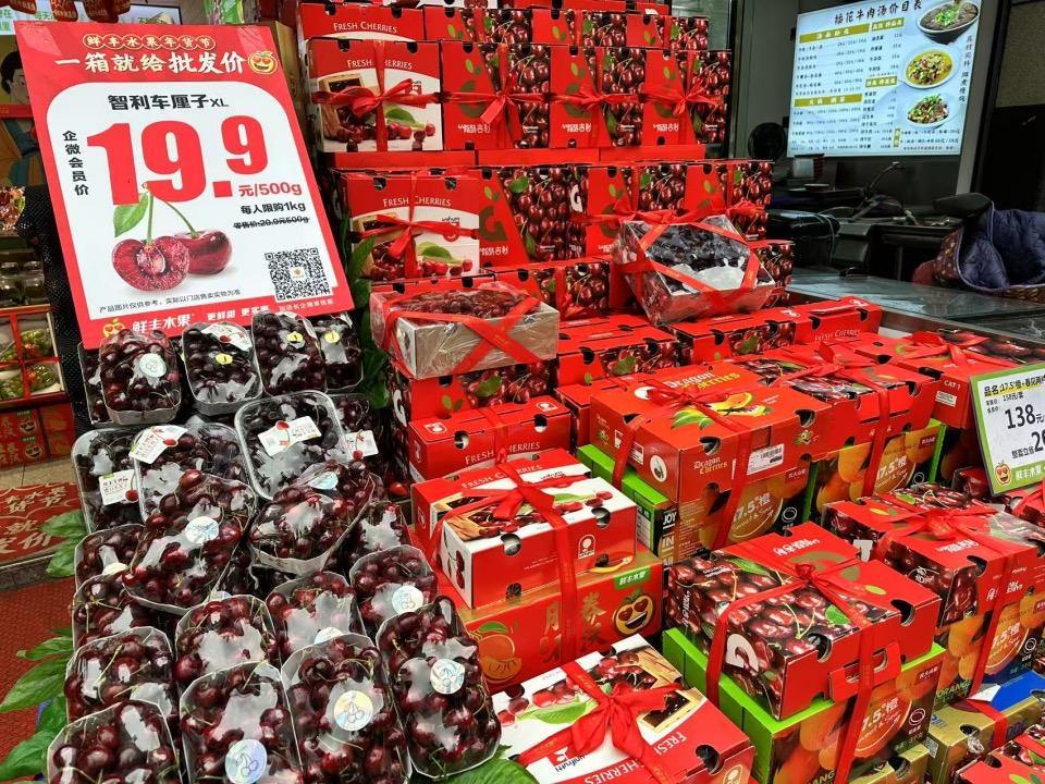 有网友向潮新闻报料,春节果品市场的明星产品车厘子身价已经从贵族走向了平民,“我家门口的水果店过完年天天在喊‘车厘子疯狂了’,车厘子零售价一度还跌破10元,只要9.9元/斤,现在整箱的车厘子也只要99元,从来没见过车厘子这么便宜过。”