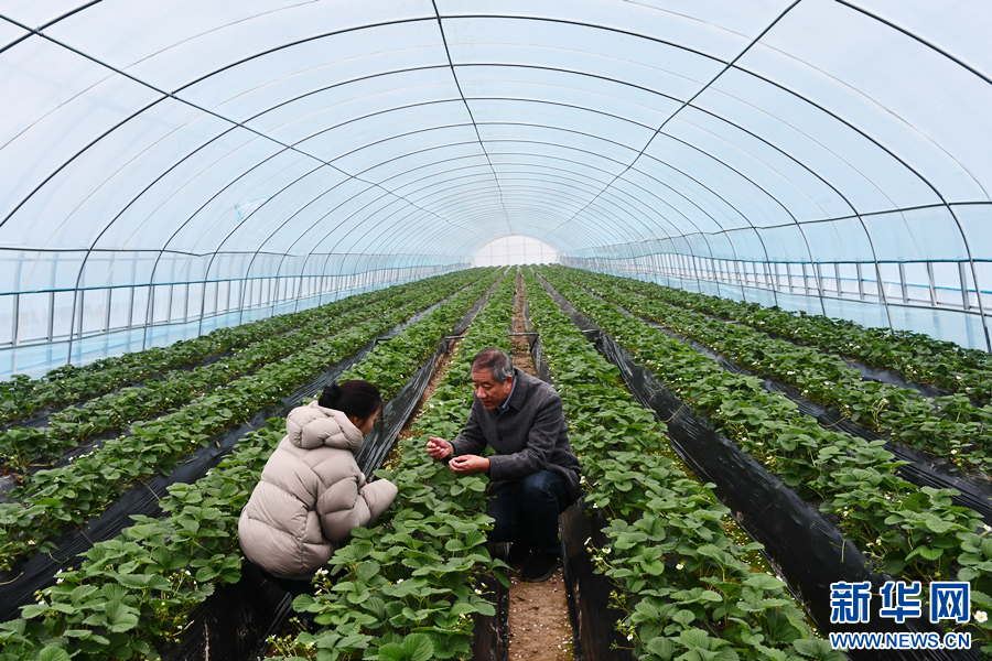 技术专家指导村民种植草莓。新华网发(赵怀勇摄)