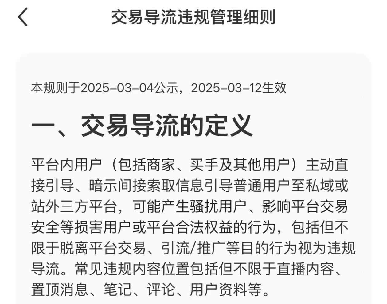 【环球网科技综合报道】3月12日消息,小红书平台发布《交易导流违规管理细则》,明确禁止内容创作者通过除小红书商城、直播间内购物车功能、官方留资组件之外的其他任何形式引导站外交易。该规则将于3月12日正式生效,违规者将面临警告、限制直播甚至永久封号等处罚。