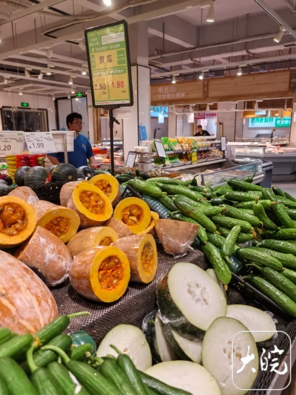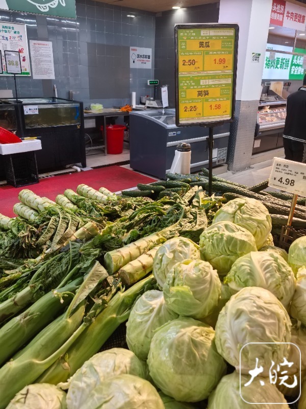 大皖新闻记者清点了一下,该超市参加活动的蔬菜有十多种,品种比其他超市略微少一点。大皖新闻记者随后又走访了一家参与活动的超市,发现情况基本类似。