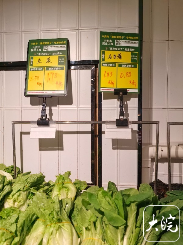 大皖新闻记者随后来到六安北塔公园附近(解放北路)一家参加活动的超市,该超市下午的顾客不是太多,有顾客在"惠民菜篮子"区域看来看去,挑选自己需要的蔬菜。