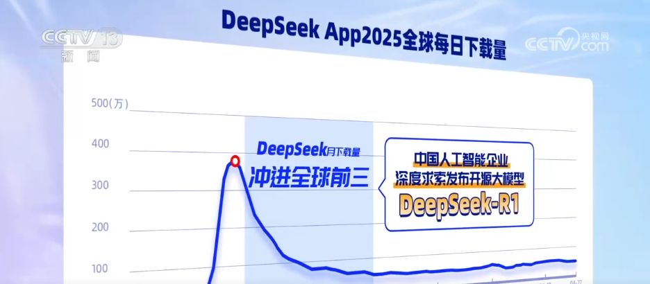2月,DeepSeek上线。短短几周,下载量冲进全球前三。“硬核”算法加上流畅体验,外国用户惊喜地发现,中国的大模型也能好用又高效。