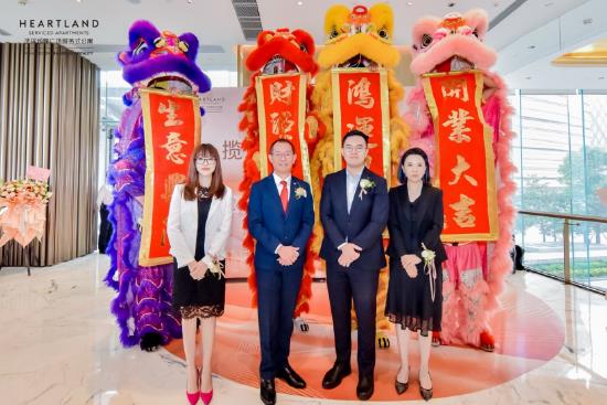 (顺序从左到右)武汉恒隆广场服务式公寓总经理王君女士、辉盛国际中国华北、华东、华中区区域总经理Michael Tam先生、武汉恒隆广场副总经理叶宇岸先生、恒隆地产内地住宅及服务式公寓副总经理王莉女士
