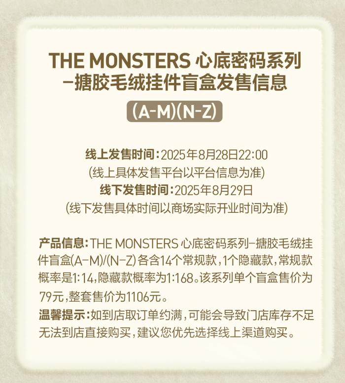 红星资本局8月28日消息,泡泡玛特“迷你版LABUBU”(THE MONSTERS心底密码系列)将于今日22时线上开售,明日(8月29日)线下开售。