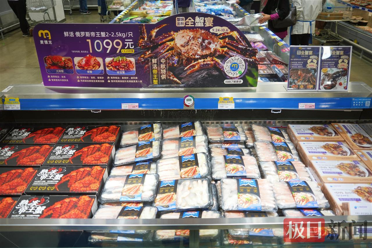 生鲜区同样人气旺盛,全蟹宴阵容强大,包括帝王蟹、珍宝蟹、青蟹、大闸蟹、雪蟹腿等多种选择,价格惊喜,满足不同顾客的节日需求。