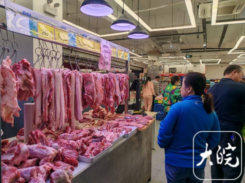 周谷堆市场信息员张飘逸向记者介绍,国庆节后猪肉价格持续下跌,“上周白条热肉均价14.21元每公斤,周环比下跌1.84%,同比下跌31.34%,本周均价13.79元每公斤,周环比下跌2.96%,同比跌幅超三成。”