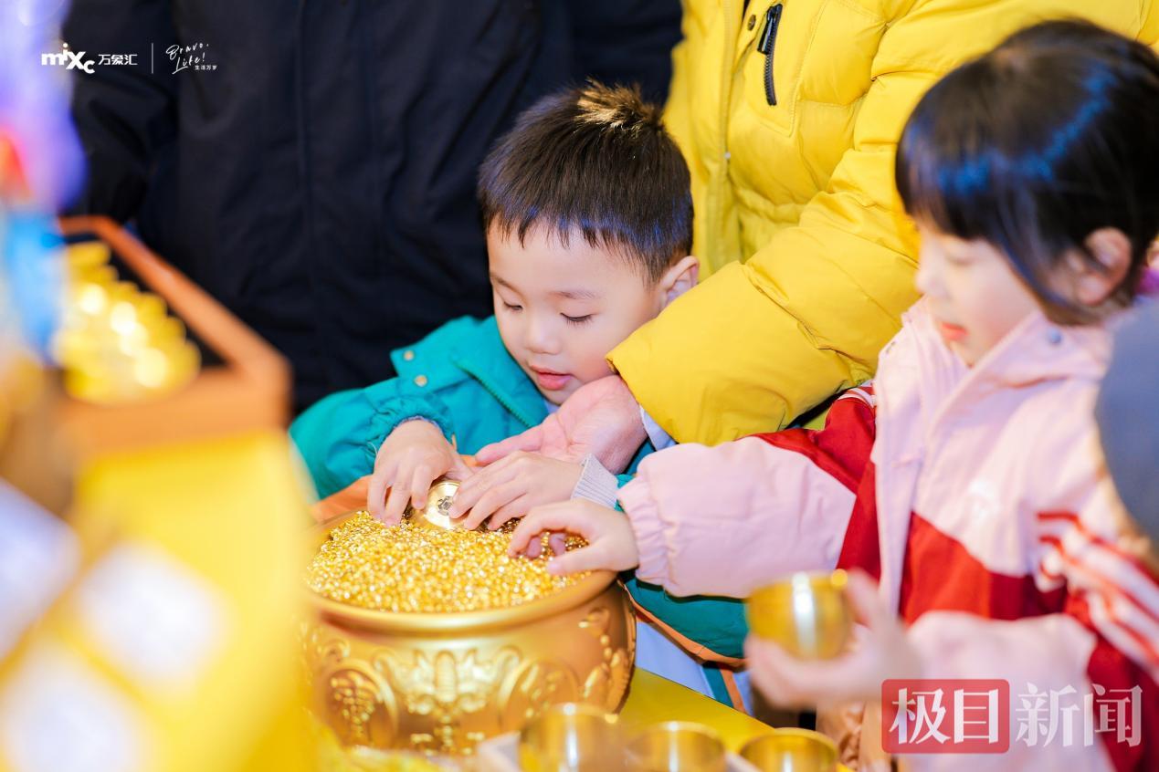 金元宝68元一钵,能装多少装多少,装进福袋攒福气。2025年12月31日,不少市民在武汉亲橙万象汇的“归元吉市新春祈福主题快闪店”体验新年气氛,祈愿新的一年盆满钵满,福气满满。“就是在新年第一天讨个彩头,蛮有趣的。”95后市民小李向记者展示自己的收获,“这一份里面有不少小金元宝,分享给身边的人,朋友们都非常开心。”