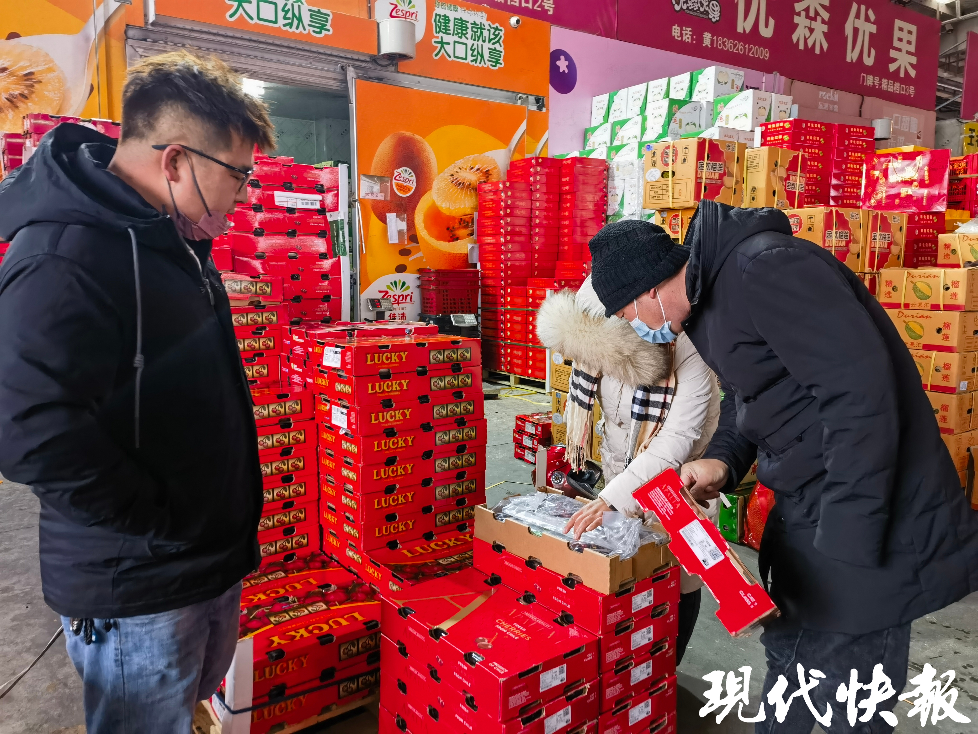 现代快报讯(通讯员孟海花 记者高达)随着南半球车厘子进入采收旺季,苏州最大的“果盘子”——南环桥市场迎来了智利车厘子的集中上市高峰。1月7日,现代快报记者从市场获悉,当日市场车厘子到货量已达60吨,创下近期新高,价格方面更是迎来显著“跳水”,今年元旦以来,南环桥市场内车厘子整体均价较上月环比下降超40%。曾被视为“贵族水果”的车厘子,已大幅回落至“平民区间”,以亲民的姿态走进寻常百姓家。