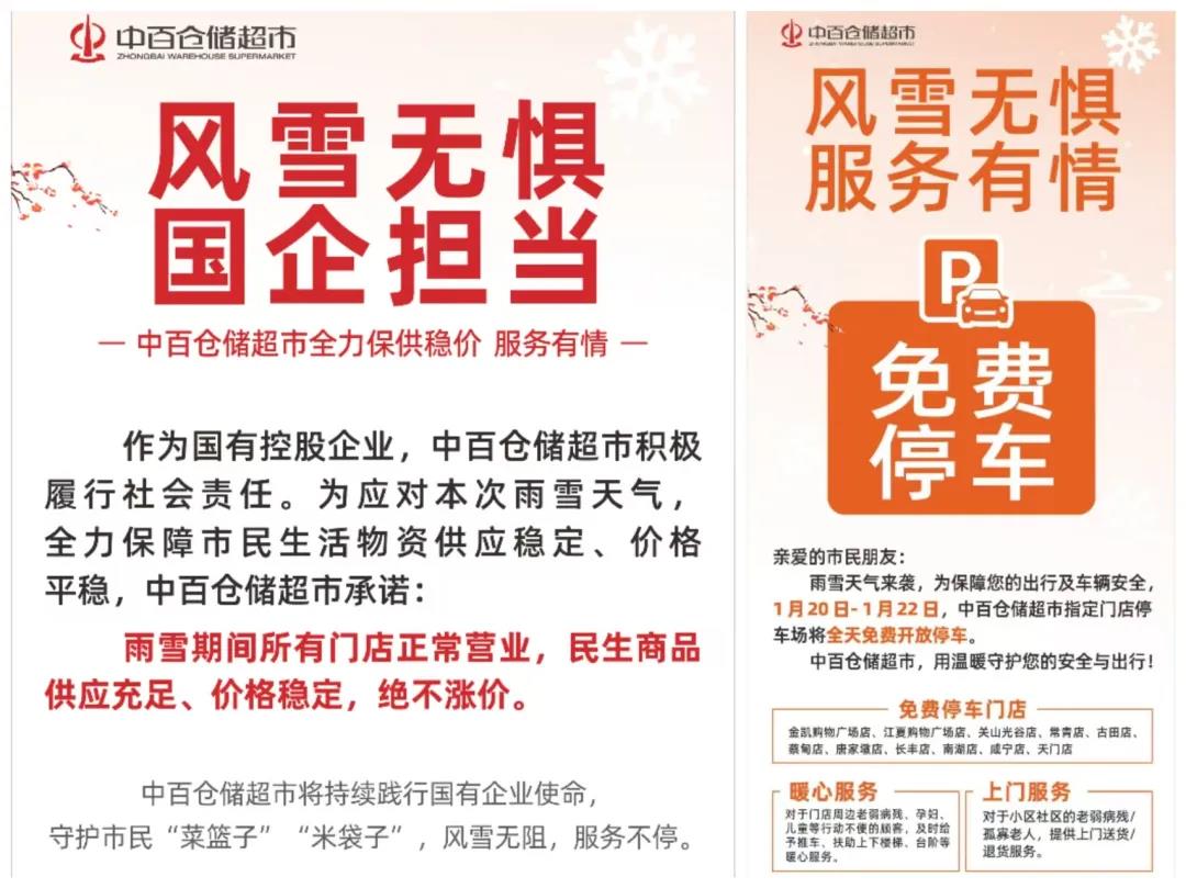 近日,湖北省遭遇低温雨雪寒潮天气,局部地区持续性冻雨导致路面湿滑、气温骤降,给市民出行购物和生活保障带来不便。作为武汉本土零售龙头国企,中百仓储在集团统一部署下迅速启动应急响应,将便民服务与人文关怀放在首位,同步筑牢货源、价格、安全三道防线,用贴心举措与坚实保障,为风雪中的市民送上稳稳的温暖。
