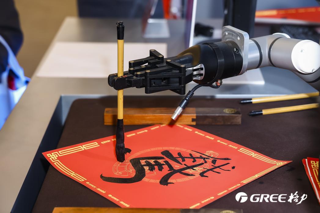 格力双臂智能柔性操作机器人现场书写毛笔字