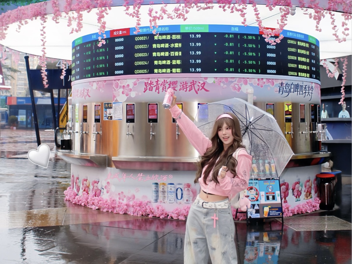 在光谷步行街,入口处的巨型“啤花花”气模,成了路人合影的热门选手。3月20日至29日,大型踏青赏樱路演活动也会在光谷广场每日不停歇,昼夜惊喜不重样。同期亮相的“樱花主题版”青岛啤酒交易所心动开市,街头社交氛围感十足,年轻人可以在这里聊天、打卡、畅饮,把春天的松弛感尽情喝到嘴里。光谷广场的多块巨幕也同步上线青岛啤酒樱花季内容,覆盖周边百万大学生及年轻人群。对武汉的年轻人而言,找“啤花花”打卡,正在成为这个春天的新鲜事。