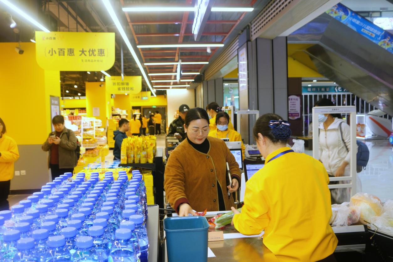 开业当天,门店里人头攒动,最热闹的当数生鲜区。基地直采的应季春菜还带着露水,刚分割的猪肉纹理清晰,鲜活的水产品在游动……小百惠门店承诺“生鲜商品每日鲜供”,用严格的品控守好居民的“菜篮子”。