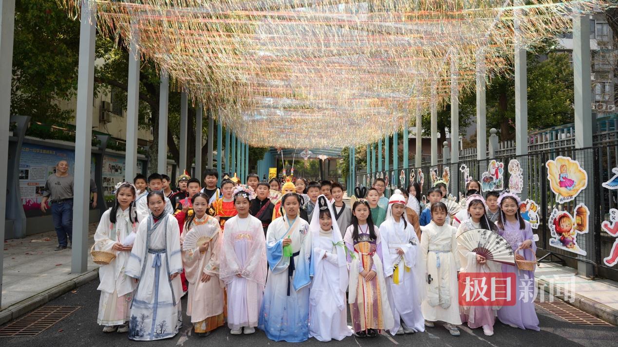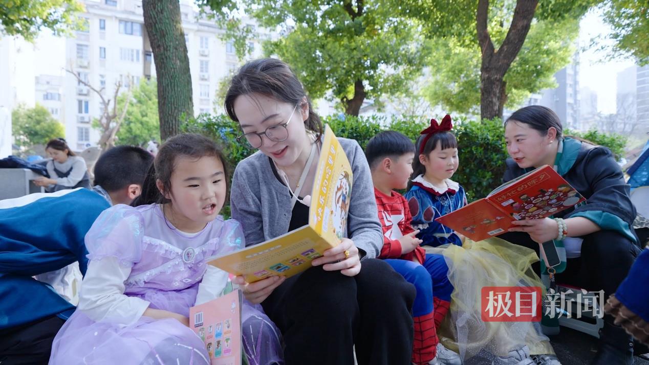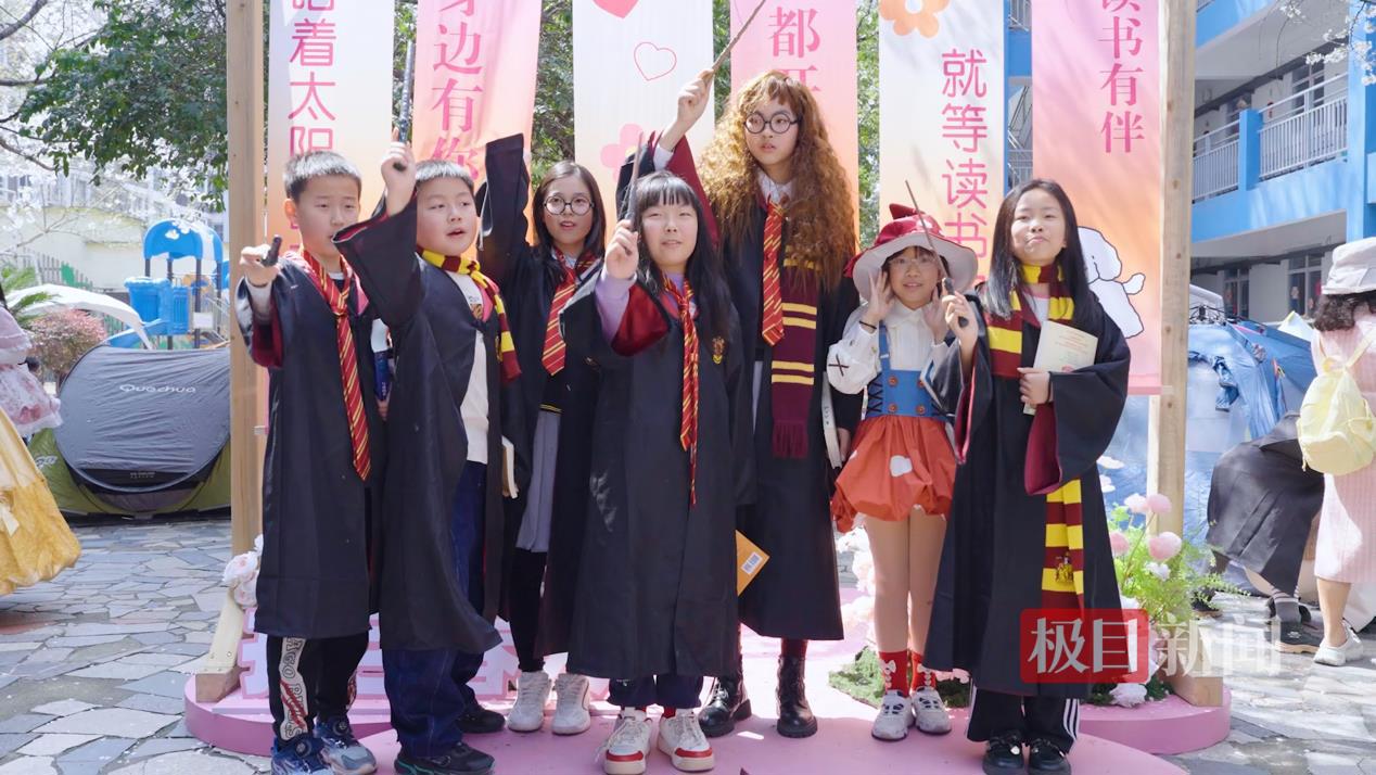 活动现场,孩子们身着特色服饰,与老师一同化身经典书中角色,迈着轻快的步伐在校园巡游,灵动的身影、灿烂的笑容,成为樱花树下最鲜活的风景。22间“故事教室”同步敞开大门,每一间都藏着不一样的阅读惊喜,等待着孩子们带着好奇推门而入,在聆听与互动中感受文字的魅力。