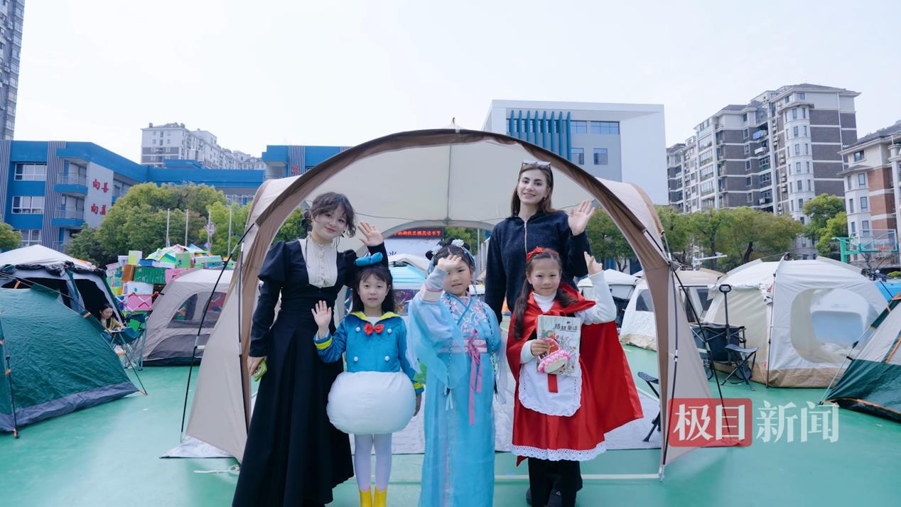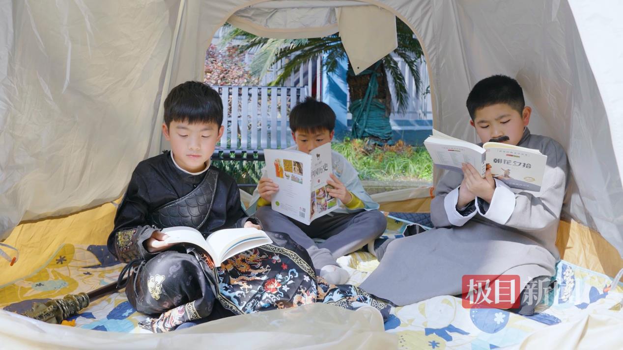 操场上的帐篷区与落满花瓣的樱花林间,更是成了孩子们的“沉浸式阅读角”。孩子们或坐或卧,静静翻开手中的书本,轻柔的音乐缓缓流淌,粉色花瓣偶尔落在书页上,构成一幅“人在花中读,书伴春风香”的唯美画卷,时间仿佛在字里行间悄然慢了下来,让每一位参与者都能沉浸式感受阅读的乐趣。