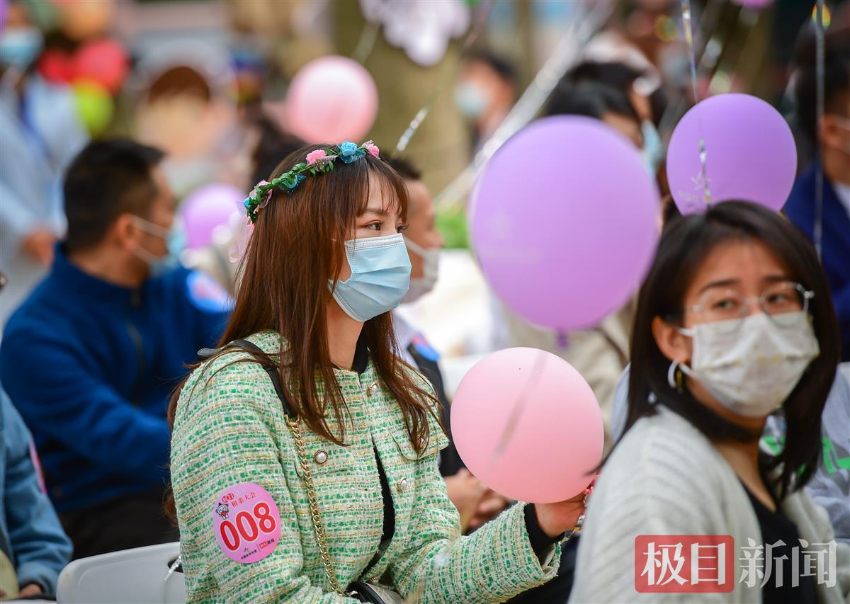 上午9时许,单身青年男女陆续抵达会场。他们当中,有很多来自光谷的知名企业,也有武汉市各机关单位的朋友。亮健康码、行程码,测温,出具14天健康自查表后,领取臂贴和心意贴的男女嘉宾步入会场,穿插就坐于彩色气球装点的唯美座席。