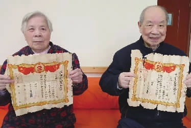 “结婚70年,搬家都搬了5次,结婚证一直带在身边。”翻出边沿破损、早已泛黄的结婚证书,两位老人眼里满是幸福。