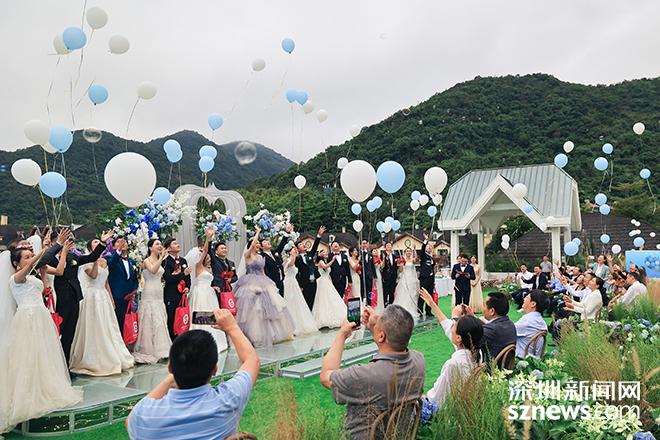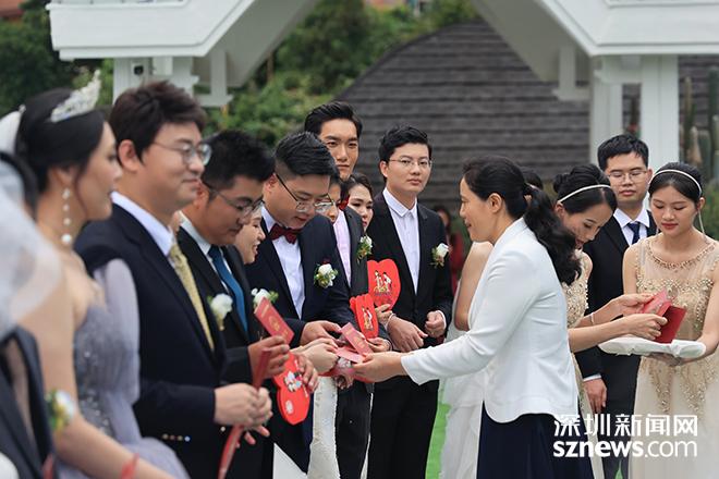 深圳新闻网2023年11月11日讯(记者黎阳 潘峰 李小辉 通讯员林荣志 余慧雯)“集体婚礼既能省略传统婚礼的繁琐形式,还能和其他新人们共同接收到美好祝福,这样的婚礼真的很特别。”11月11日,在这寓意“一生一世、一心一意”的浪漫时节,由盐田区委宣传部、区工业和信息化局、区民政局、区文化广电旅游体育局、梅沙街道办等联合举办的“山盟海誓,爱在盐田”2023年盐田区集体婚礼圆满礼成。区委常委、副区长高东春,区委常委、宣传部部长张玉领等嘉宾现场见证了11对新人携手挚爱、喜结连理,步入温馨的婚姻殿堂。