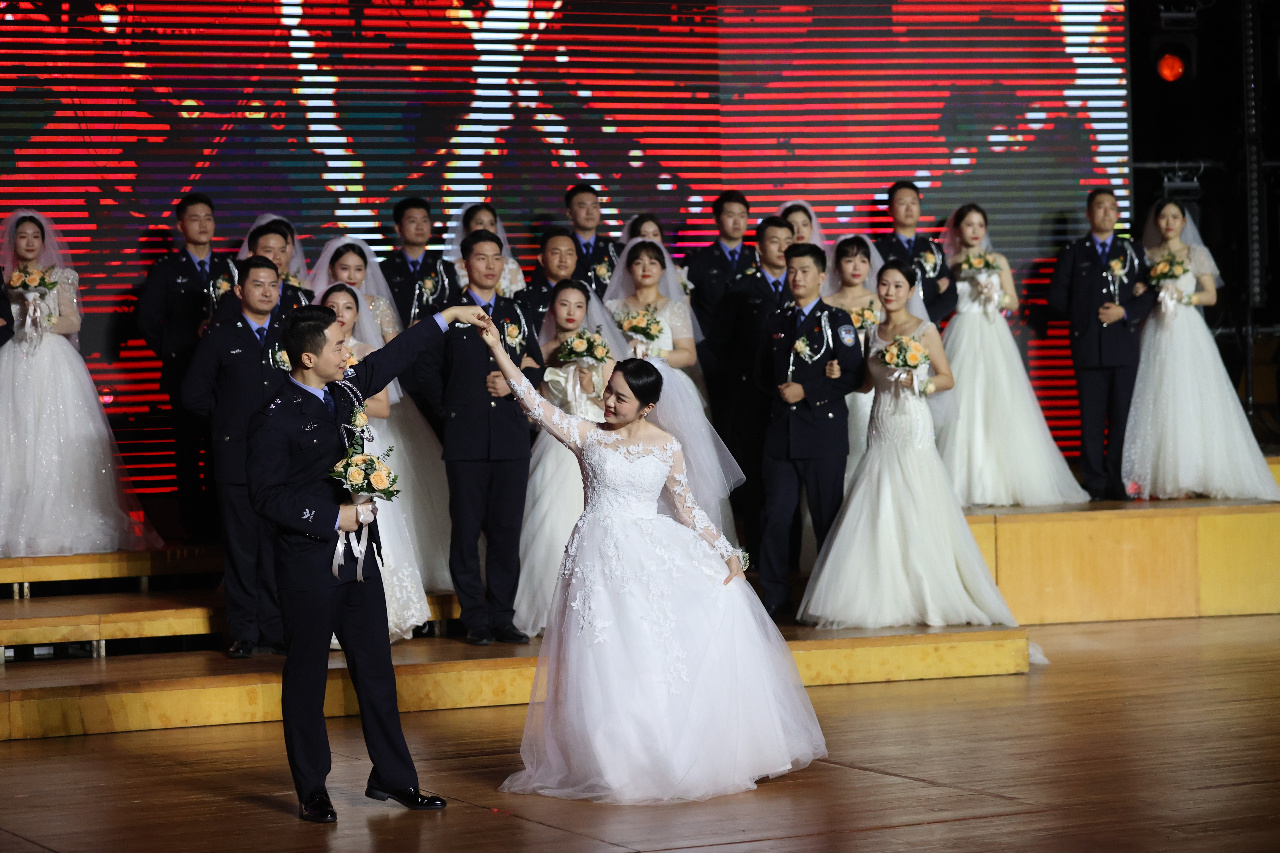 在经历考验的次次冲锋中,有一种浪漫叫“心系彼此”。这36对新人中有9对是双警连理,他们互相鼓励,为爱守护,既是共同谱写青春之歌的爱人,也是并肩战斗的战友。