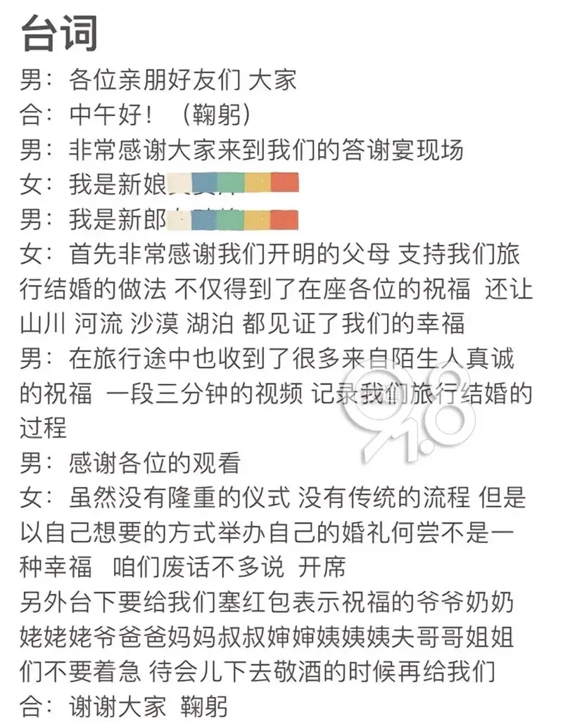 5月2日,郑州的吴女士刚刚结束了自己婚礼答谢宴,开席前和老公在台上说了大概2分钟的致辞,然后边播放婚礼旅行短视频,边开饭敬酒。