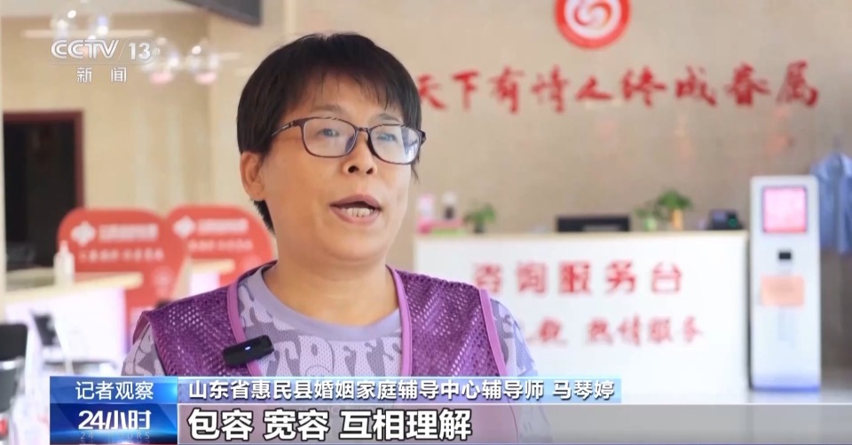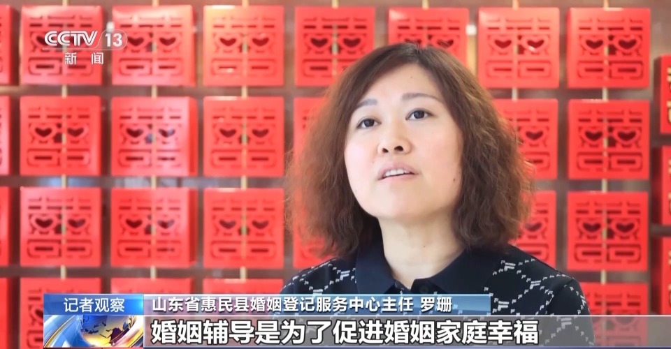 山东省惠民县婚姻登记服务中心主任 罗珊:婚姻辅导是为了促进婚姻家庭幸福、社会稳定的一项重要的基本内容,迫切需要专业的人才来从事这项工作,建立一个婚前、婚中、婚后全链条的婚姻辅导服务。