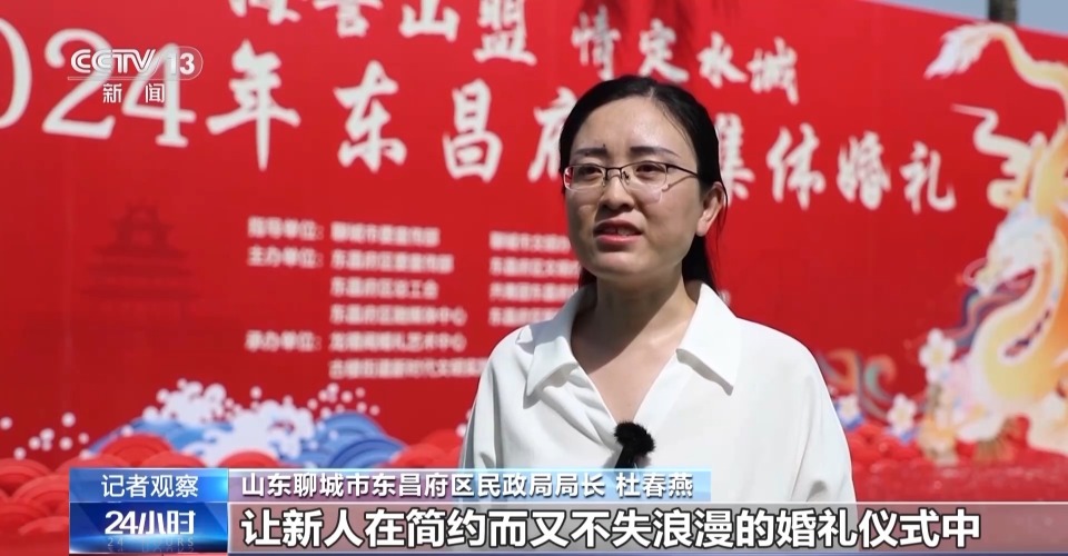 山东聊城市东昌府区民政局局长 杜春燕:我们通过集体婚礼来引导婚俗改革,告别了过去铺张浪费、烦琐的仪式,让新人在简约而又不失浪漫的婚礼仪式中感受人生角色的转变,用正确的婚恋观念来引导广大青年朋友,让婚姻回归爱的本质。
